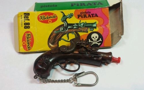 Title (ebay affiliate link): VINTAGE MINIATURE TOY PIRATE PISTOL (PiRATA pistola)CAP GUN Key Chain