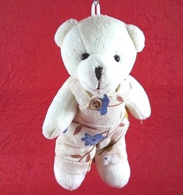 Title (ebay affiliate link): HANDMADE MINIATURE BEAR JOINTED STUFFED TEDDY KEYCHAIN NEW VINTAGE CUTE WHITE