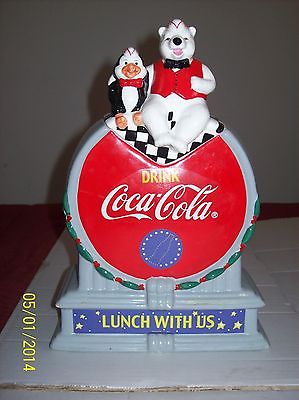 Coca-Cola Cookie Jar, Ceramic W/ Polar Bear & Penguin - Good condition