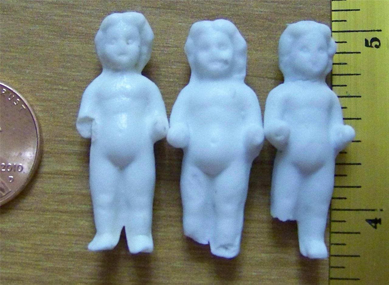 3 Tiny 1 1/4" Dolls Frozen Charlotte Antique Porcelain