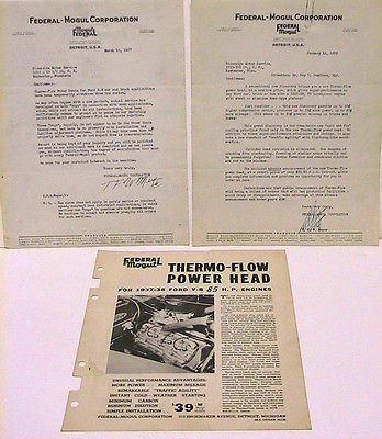 1937-38 Federal-Mogul Thermo-Flow Heads for Ford Flathead V-8 Brochure/Letters