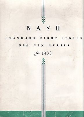 VINTAGE 1933 NASH ORIGINAL FOLD OUT SALES BROCHURE STANDARD 8 & BIG 6 SERIES
