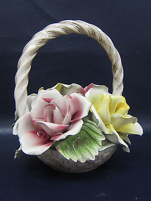 VINTAGE CAPODIMONTE ITALIAN PORCELAIN BASKET WITH ROSES