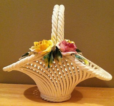 Title (ebay affiliate link): Woven White Porcelain Basket with Roses ~~ Made in Italy ~~ Capodimonte?