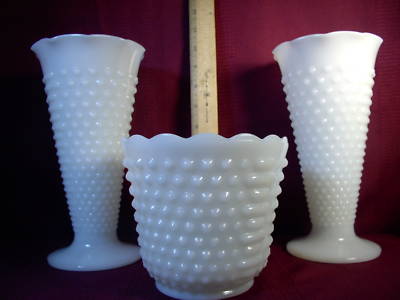 Lot of 2 Milk Glass Vases with Planter/Hobnail