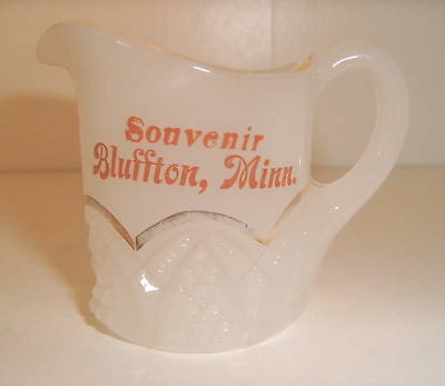VINTAGE MILK GLASS CREAMER SOUVENIR "BLUFFTON, MINN."