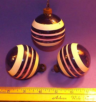 Vintage WWII Era Unsilvered Painted Stripes Purple Glass Ornaments Set of 3