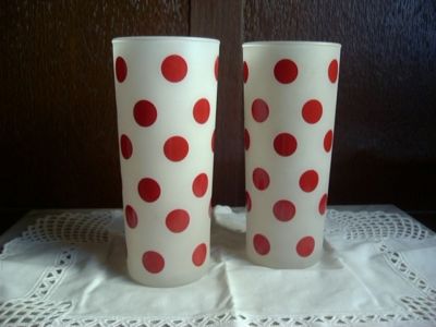 2 Hazel Atlas Red Polka Dot Dots Milk Glass Tumbler