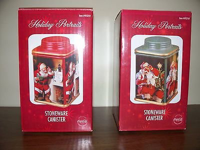 Set of 2 Holiday Portraits Coca-Cola Christmas Stoneware Canisters-NIB