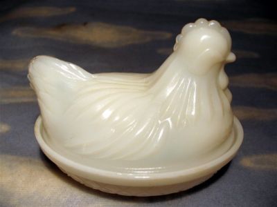 Title (ebay affiliate link): MILK GLASS HEN ON A NEST CHICKEN ANTIQUE VINTAGE NICE