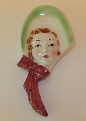 Occupied Japan Lady Wearing Bonnet Hat & Bow Wall Pocket
