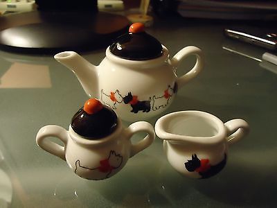 Schylling Children's/Girl's Toy Porcelain Scottie Tea Pot, Sugar and Creamer