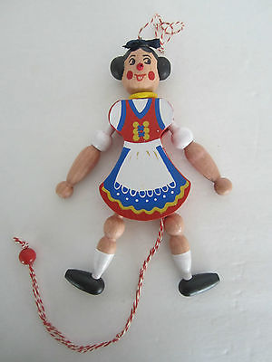 Vtg Austrian FAMO Wooden Pull String Toy Puppet Dancing Ornament Bavarian Girl