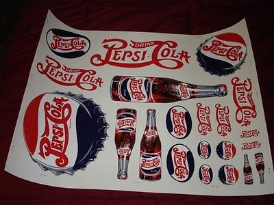 VINTAGE PEPSI DECALS SHEET 26X20 RED WATER RELEASE