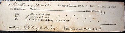 1832 Rockingham County Virginia Slave Tax Receipt Minnick Family