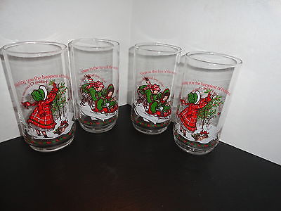 4 Vintage Holly Hobbie Coca Cola Christmas Glasses Limited Edition