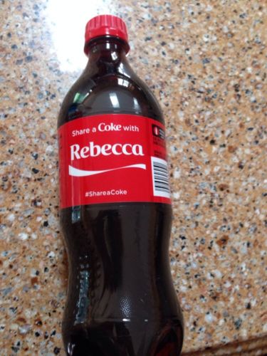 Title (ebay affiliate link): Share A Coke With Rebecca For The Holidays Christmas 2014 Cola 20 Oz New