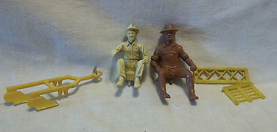 2 1950's Seated Farmer Tractor Drivers Cream & Brown Figures Tractor Plow Fence