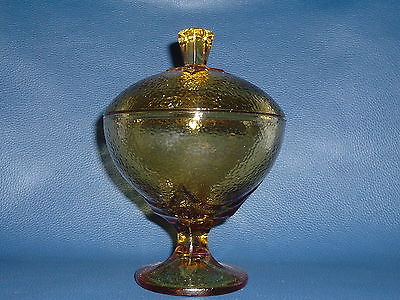 Vtg Apothecary Heavy Amber Pedestal Glass Large Candy Jar Canister Container