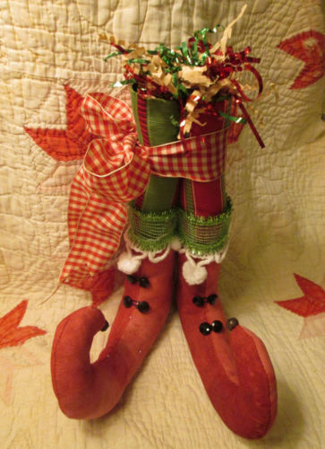 Title (ebay affiliate link): Handmade Christmas ELF SHOES - Primitive Holiday Decoration - Shelf Sitter Ornie