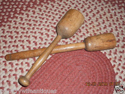 Title (ebay affiliate link): TWO 18TH / E 19TH C WOODEN MASHERS MAPLE AND WALNUT GOOD PRIMITIVE TREENWARE