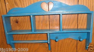 Title (ebay affiliate link): Turquiose Color Vintage Look Wooden Wall Shelf Distressed Paint 17"x 11"
