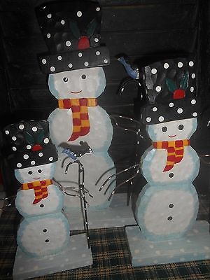 Set of 3 Primitive Wooden Snowman Sitters Christmas Holiday Winter Gift