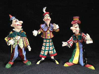 Set of 3 Large Vintage Porcelain Clown Figurines Italy Mid Century 1950s