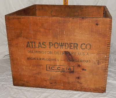 Title (ebay affiliate link): Antique VTG Wooden ATLAS POWDER CO Coalite Dynamite Crate Box Dovetailed LARGE