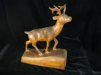 Hand Carved 8 Point Wood Buck Deer Wooden Carving Figurine Signed - Heppell