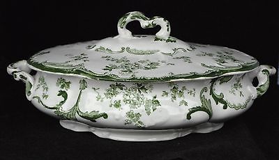 Rare! Antique Ridgways Royal Semi Porcelain CHISWICK (Green) Lidded Tureen