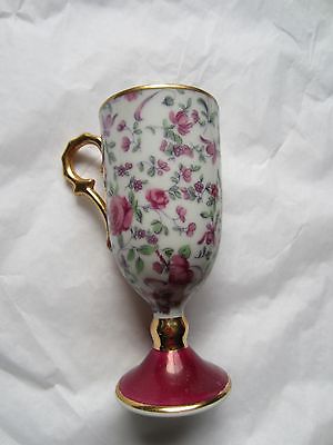 chintz Royal Sealy rose burgundy gold trim high tea footed cup