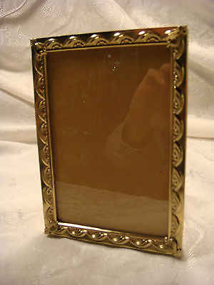 VINTAGE GOLD TONE METAL EASEL BACK PHOTO / PICTURE FRAME