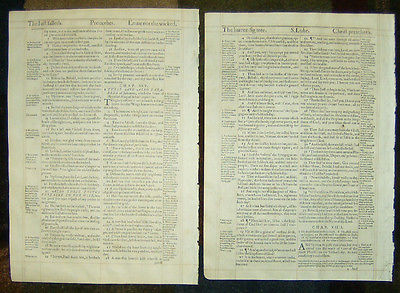 1612 Geneva FOLIO RED RULED Bible Leaves/PROVERBS/GOSPEL LUKE/PSALTER LEAF!