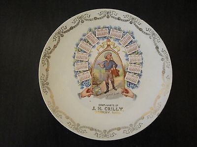 Antique 1910 Calendar plate, "Compliments of J.H. Crilly, Danbury, Iowa"