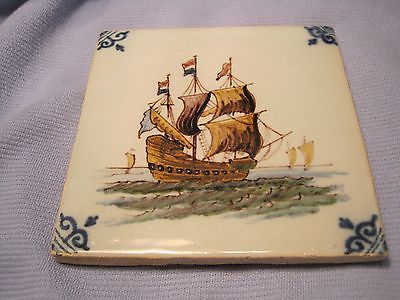 Title (ebay affiliate link): 4 Pre-1940 Dutch Hand Made Hand Painted Tichelaar Makkum Polychrome Tiles
