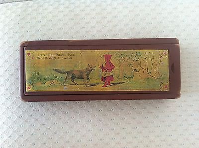 Wooden Pencil Box or Case with Red Riding Hood and Wolf