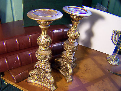 Estate! FASCINATING GOLD PAIR TALL CANDLESTICKS Antique Carved ART RARE! EODB