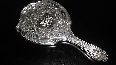 Antique Sterling Silver Beveled Hand Mirror 1900-1940 Monogramed DRESSER VANITY