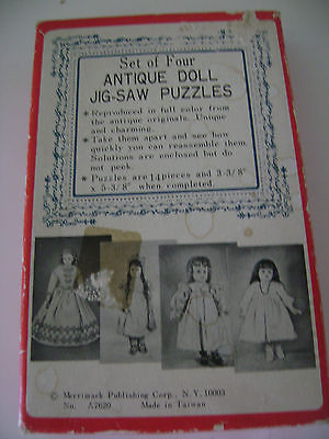 Vintage Set of 4 Antique Doll Mini Jigsaw Puzzles - Complete
