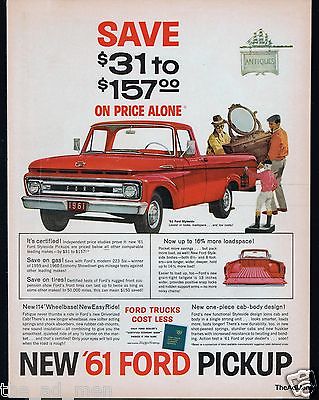 Title (ebay affiliate link): 1961 FORD F-100 PICKUP ~~ LAMINATED AD ART SAME DAY FAST SHIPPING