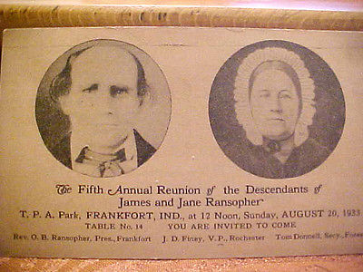 Title (ebay affiliate link): Early Frankfort Indiana Ransopher Family Reunion Postcard