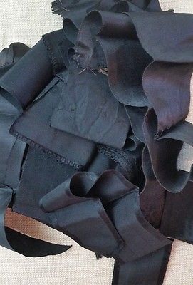 ANTIQUE VINTAGE LOT BLACK SILK SATIN RIBBON MILLINERY TRIM FRENCH DOLL DRESS HAT