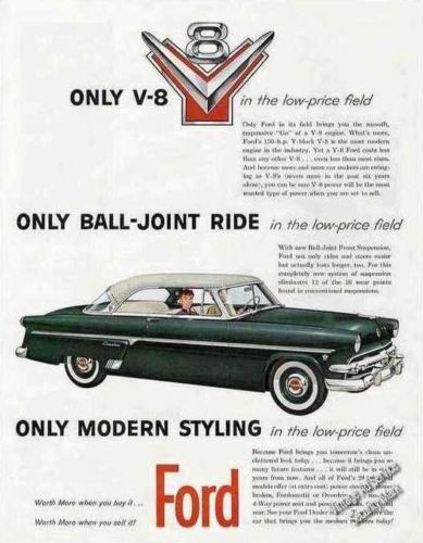 Title (ebay affiliate link): Green Ford "Only V-8/Ball Joint Ride" Car Ad 1954