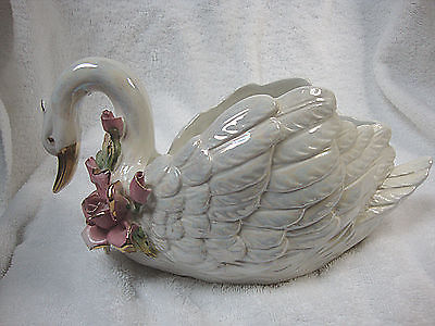 Vintage Capodimonte Graceful Swan Trinket Holder 11" x 6"