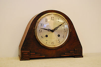 Title (ebay affiliate link): ANTIQUE ART DECO C.1940 FOREIGN OAK CASED MANTEL CLOCK, STRIKING MOVEMENT