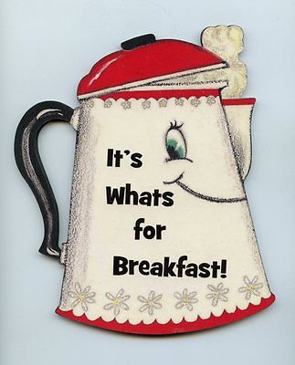 COFFEE POT HAPPY FACE BREAKFAST KITCHEN DECOR. WOOD WALL PLAQUE VINTAGE SIGN