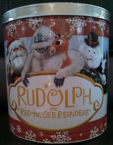 Title (ebay affiliate link): Rudolph The Red-Nosed Reindeer Popcorn Tin NEW SEALED (50th anniversary year)