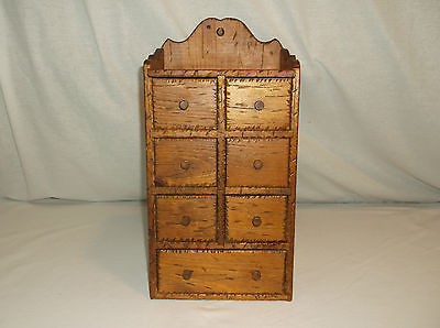 Antique Wood Tea Spice Apothecary Cabinet Chest 7 Drawer Peg Pulls Wall Rack Vtg