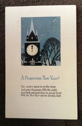 Title (ebay affiliate link): Vintage 1900's Art Deco Clock Tower New Year Postcard Old